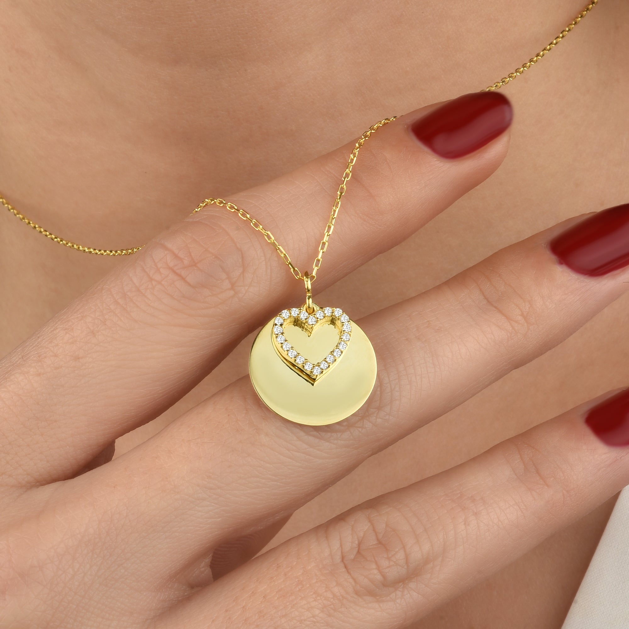 Halskette mit Herz und Kreisanhänger - Gold