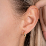 Nahaufnahme einer jungen Frau mit Sommersprossen und sonnengebräunter Haut, die große goldene Creolen trägt. Im natürlichen Sonnenlicht in Nürnberg aufgenommen – hochwertiges Editorial-Foto für Schmuck, Fashion und Social Media.