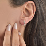 Postmodern geschnittene Ohrstecker mit kreativ platzierten Zirkonsteinen. Ein idealer Mix aus Schlichtheit und auffälliger Klasse. Die Zirkonreihe wird mit einem größeren Zirkonstein elegant ergänzt und die Reihe wird flüssig weiter bewegt. Das Design ist gold silber.