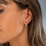 Postmodern geschnittene Ohrstecker mit kreativ platzierten Zirkonsteinen. Ein idealer Mix aus Schlichtheit und auffälliger Klasse. Die Zirkonreihe wird mit einem größeren Zirkonstein elegant ergänzt und die Reihe wird flüssig weiter bewegt. Das Design ist gold silber.