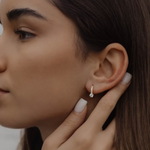 Ein schlichter Auftritt und ein überraschend modern geschnittener Zirkonstein inmitten des Ohrring-Designs. Genießen Sie die Power dieses kleines und dennoch anziehendes Ohhringpaar in Silber.