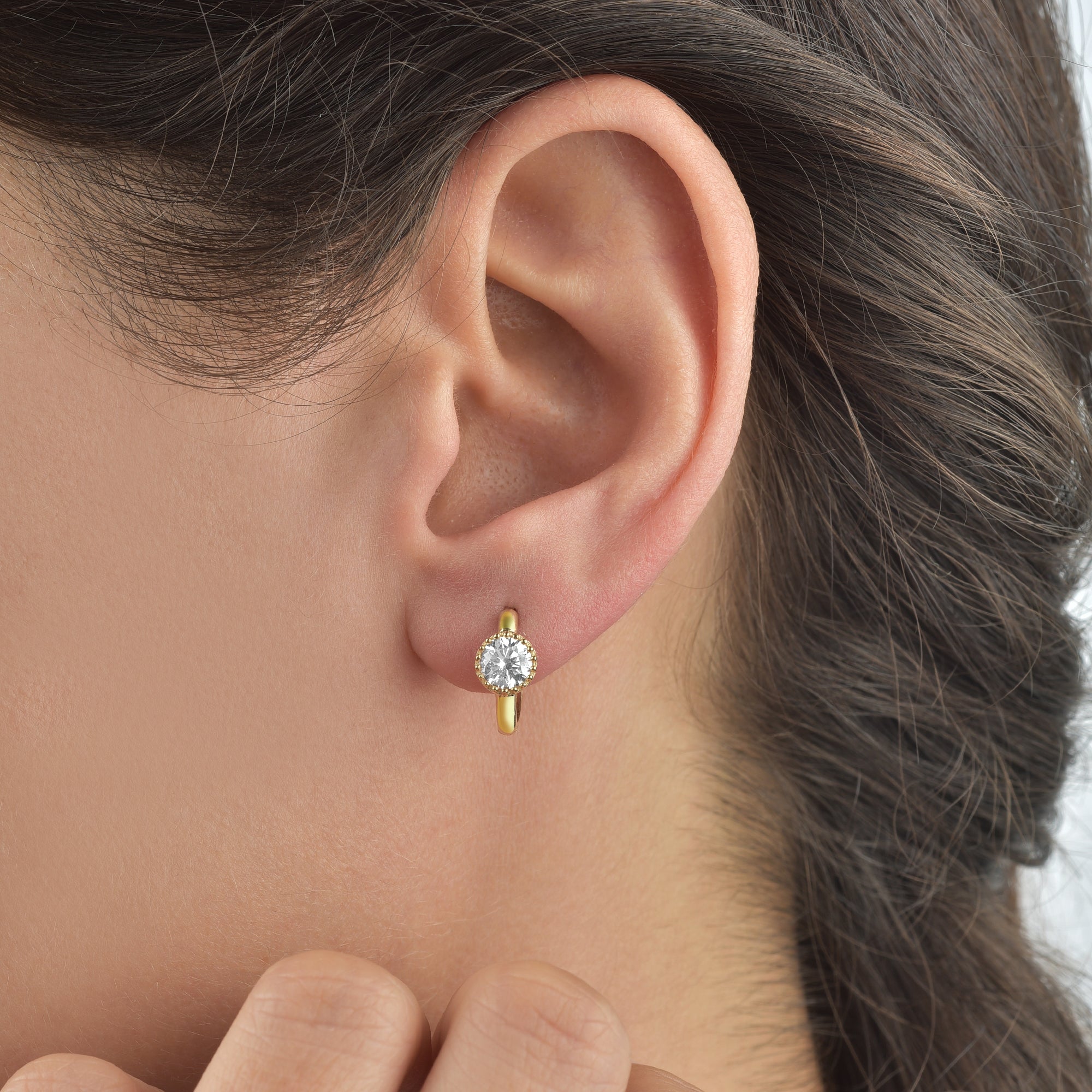 Ein schlichter Auftriit und ein überraschend modern geschnittener Zirkonstein inmitten des Ohrring-Designs. Genießen Sie die Power dieses kleines und dennoch anziehendes Ohhringpaar in gold silber.