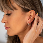Ein schlichter Auftriit und ein überraschend modern geschnittener Zirkonstein inmitten des Ohrring-Designs. Genießen Sie die Power dieses kleines und dennoch anziehendes Ohhringpaar in gold silber.