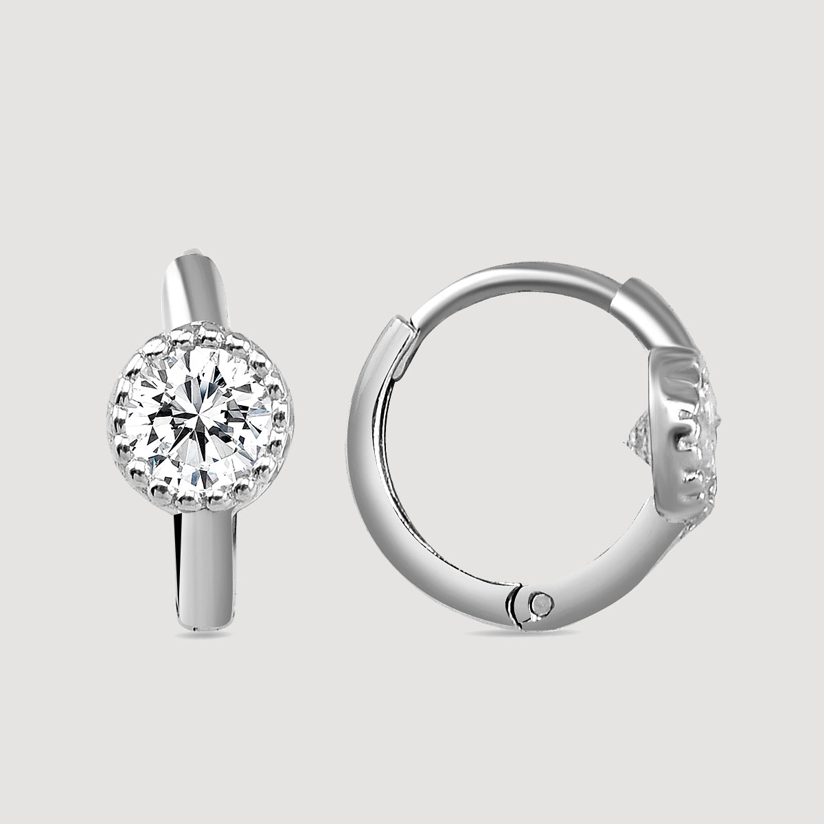 Ein schlichter Auftriit und ein überraschend modern geschnittener Zirkonstein inmitten des Ohrring-Designs. Genießen Sie die Power dieses kleines und dennoch anziehendes Ohhringpaar in gold silber.
