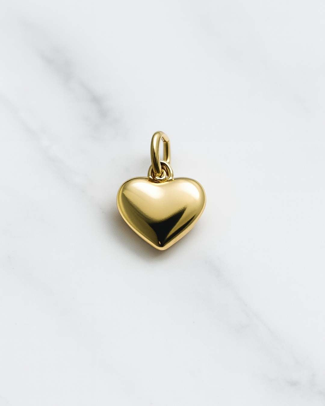 Vergoldeter Herz Charm der Lissabon Kollektion auf hellem Marmorfond, ideal für Mix und Match Ketten
