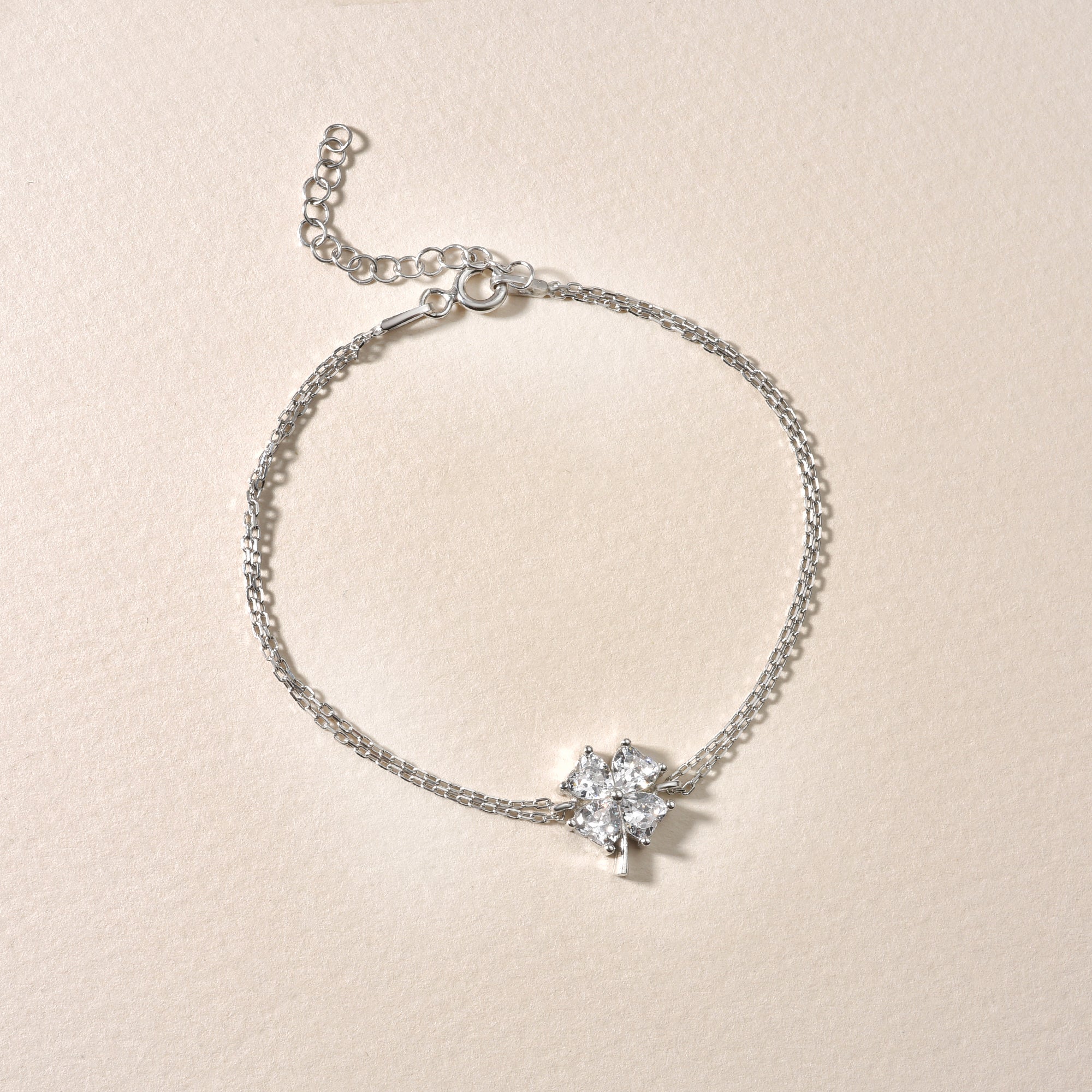 Kleeblatt Zirkonia Armkette Silber – Symbol für Glück & Eleganz