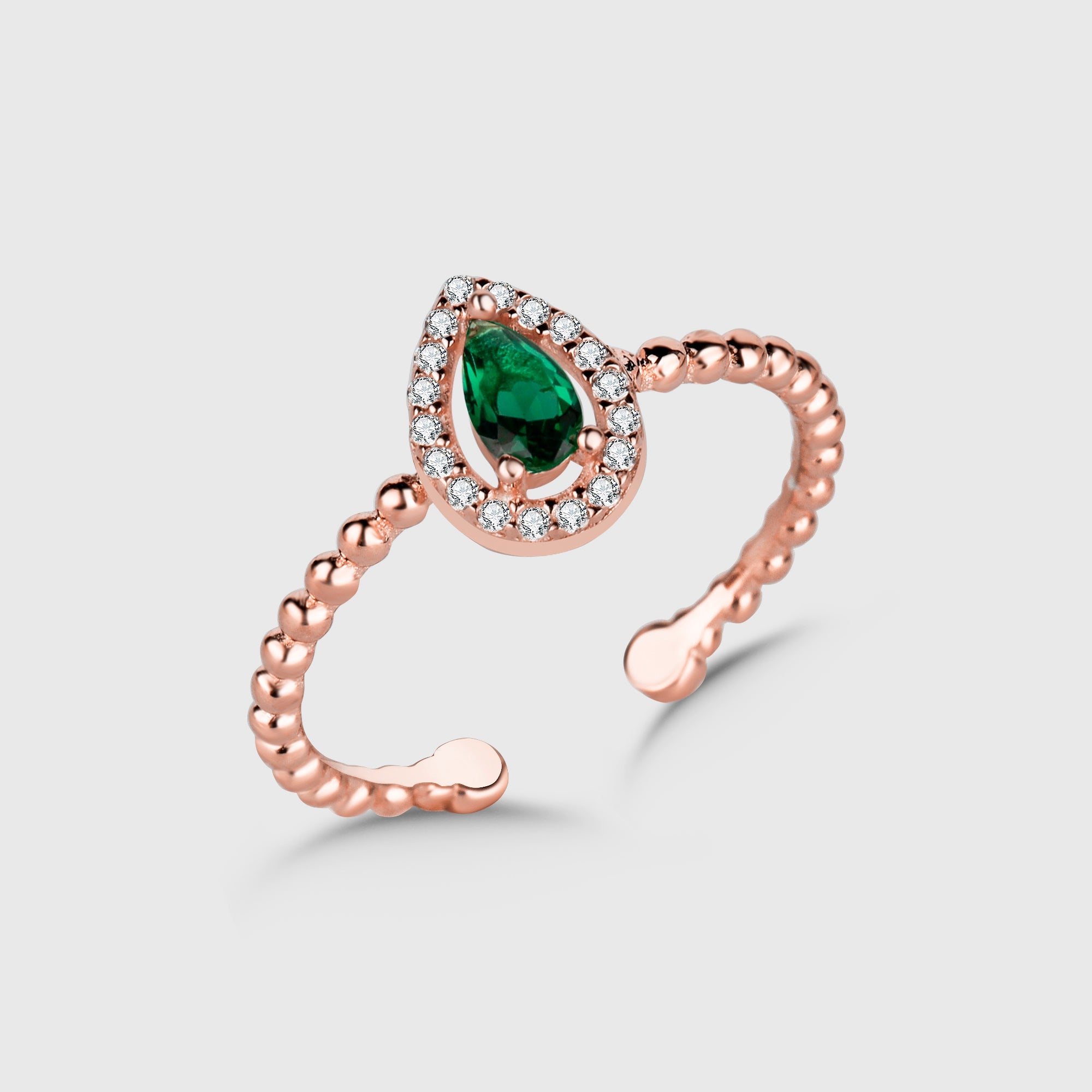Drop Emerald Ring Shiny Wreath – Rosé & Silber | verstellbar