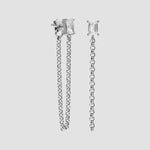 The wonderful, overlong pair of earrings is made of rhodium-plated 925 sterling silver and adorned with sparkling zirconia stones. With the long pendant, the piece of jewelery becomes a strong statement.