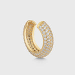 Nahaufnahme einer jungen Frau mit Sommersprossen und sonnengebräunter Haut, die große goldene Creolen trägt. Im natürlichen Sonnenlicht in Nürnberg aufgenommen – hochwertiges Editorial-Foto für Schmuck, Fashion und Social Media.