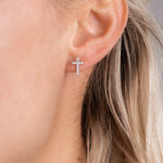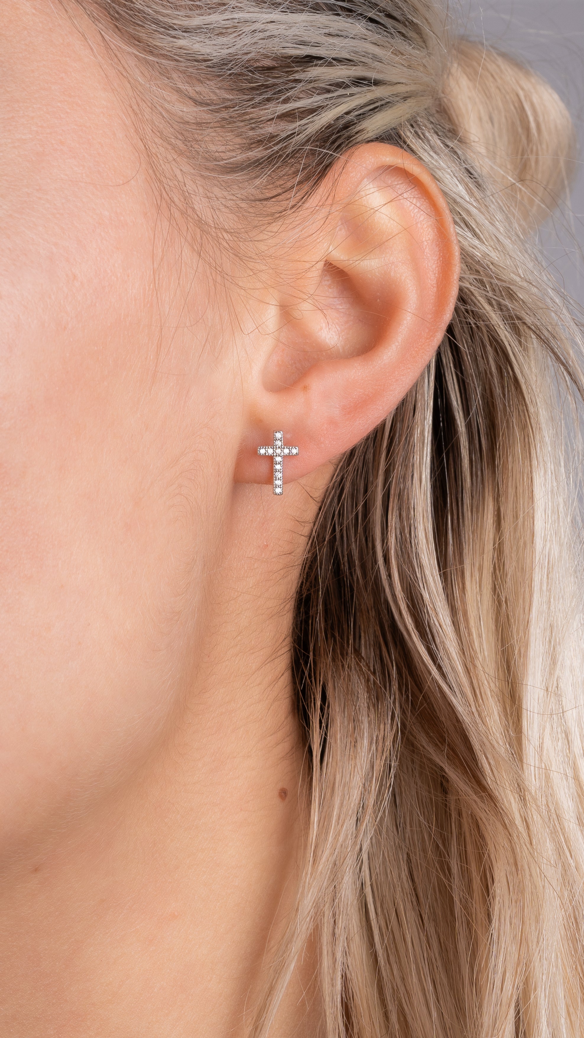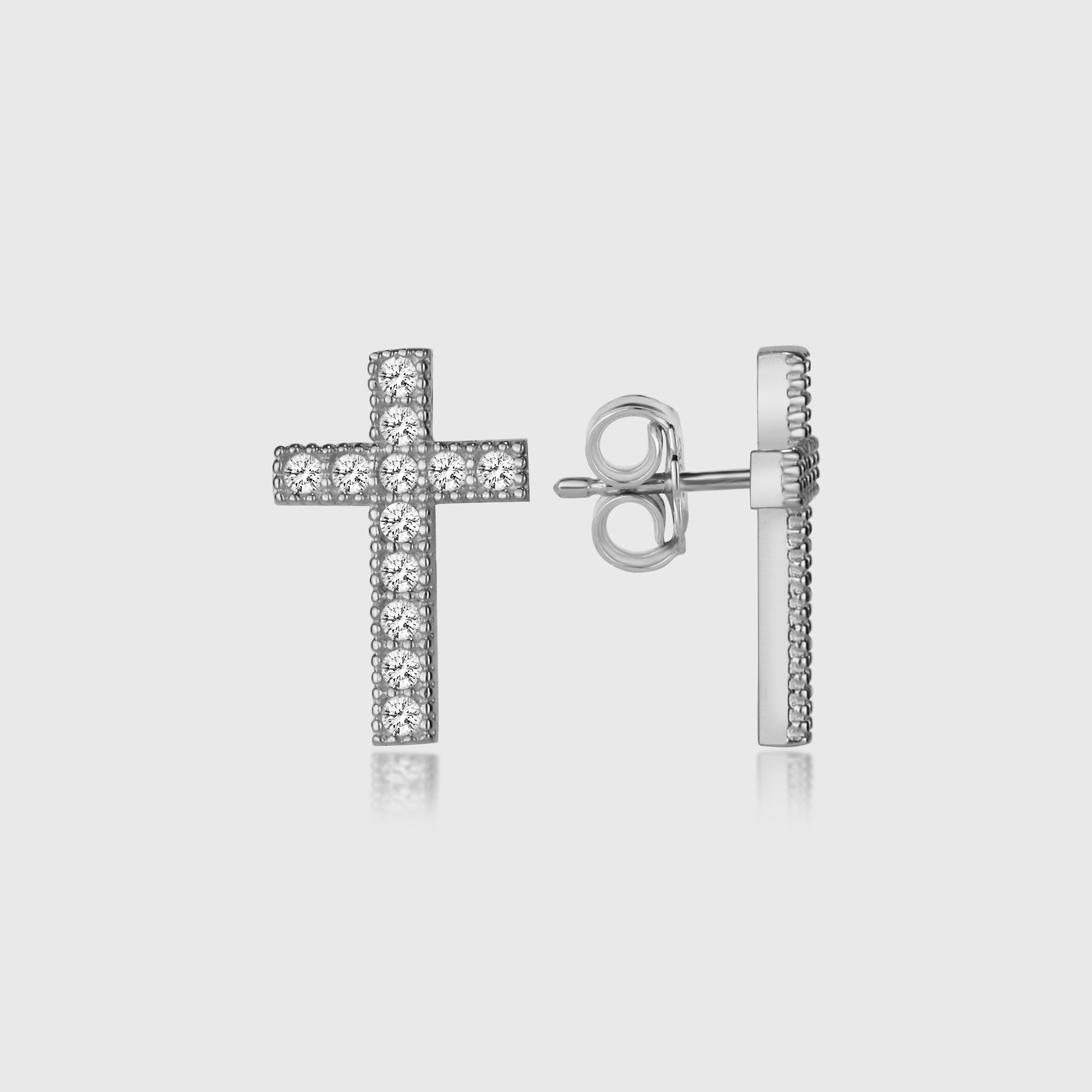 Awaken your passion and faith with these sparkling silver cross zirconia earrings! The elegant cross design is adorned with radiant zirconia stones that will enhance any outfit. A perfect gift for yourself or a loved one to show your love and faith. Order now and enjoy the sparkle of these beautiful earrings!