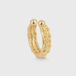 Nahaufnahme einer jungen Frau mit Sommersprossen und sonnengebräunter Haut, die große goldene Creolen trägt. Im natürlichen Sonnenlicht in Nürnberg aufgenommen – hochwertiges Editorial-Foto für Schmuck, Fashion und Social Media.