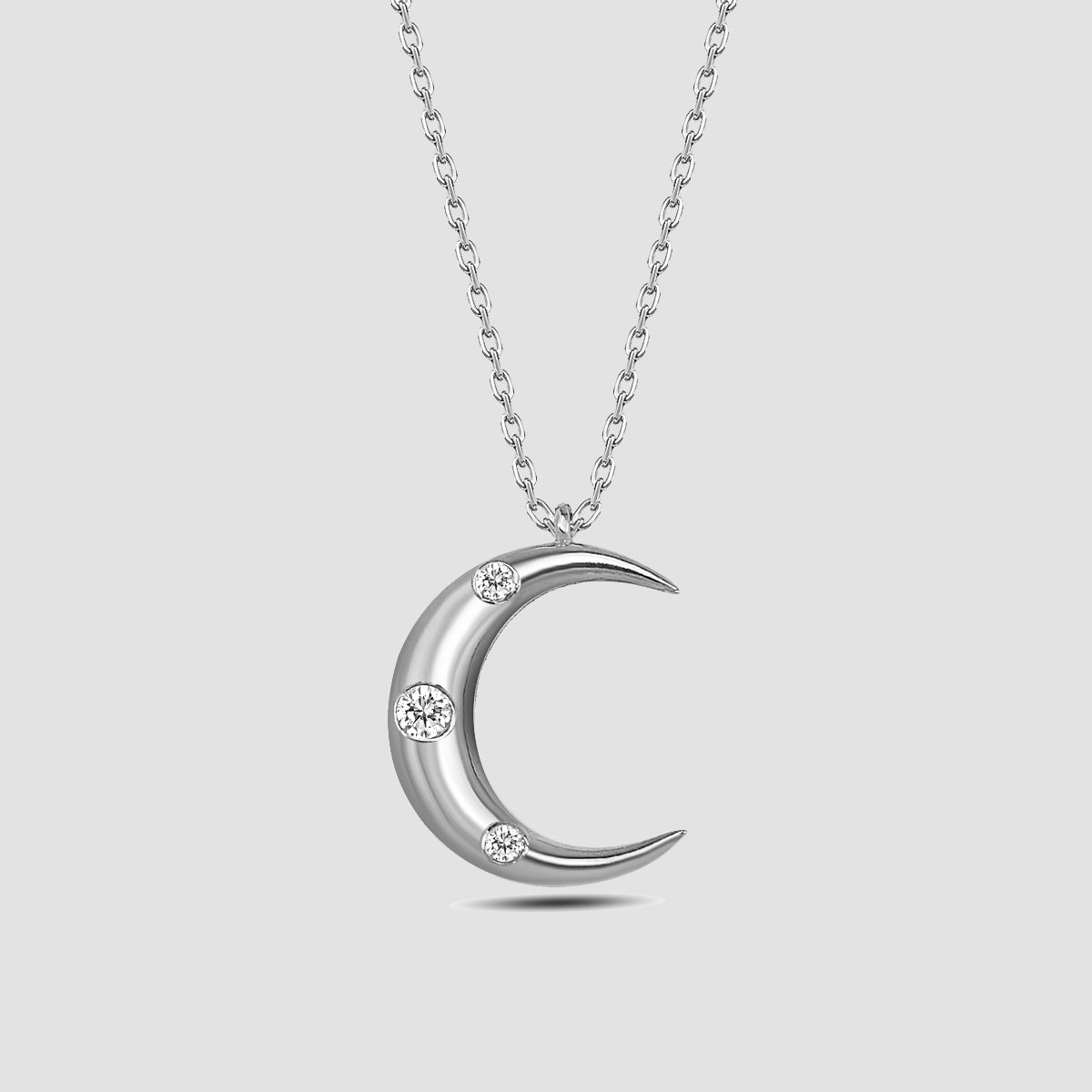 A piece of jewelry that enchants: Preciously handcrafted, this moon pendant is inspired by a bygone era. A true eye-catcher. The magic of this piece of jewelry is created by the combination of vintage design and crystal clear zirconia stones. The necklace is made of 925 sterling silver and a precious 750 gold plating.