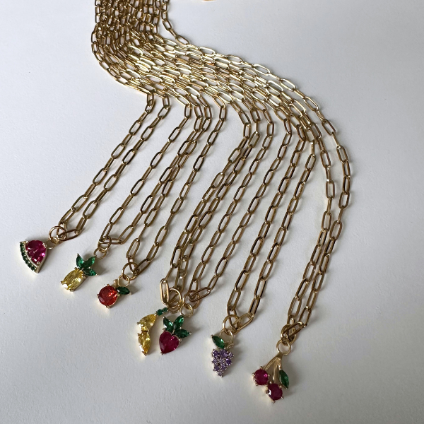 Verwöhnen Sie Ihrn Hals mit unserem exquisiten Halsketten aus Edelstahl mit herrlichen Früchte Charms aus 925 Sterling Silver. Das perfekte Accessoire, um Ihrem Outfit einen Hauch von Glanz und Farbe zu verleihen. Genießen Sie die luxuriöse Qualität und die lebendigen Farben dieser Früchtehalskette. Holen Sie sich jetzt unsere Halskette Obstjuwelen und strahlen Sie wie nie zuvor!