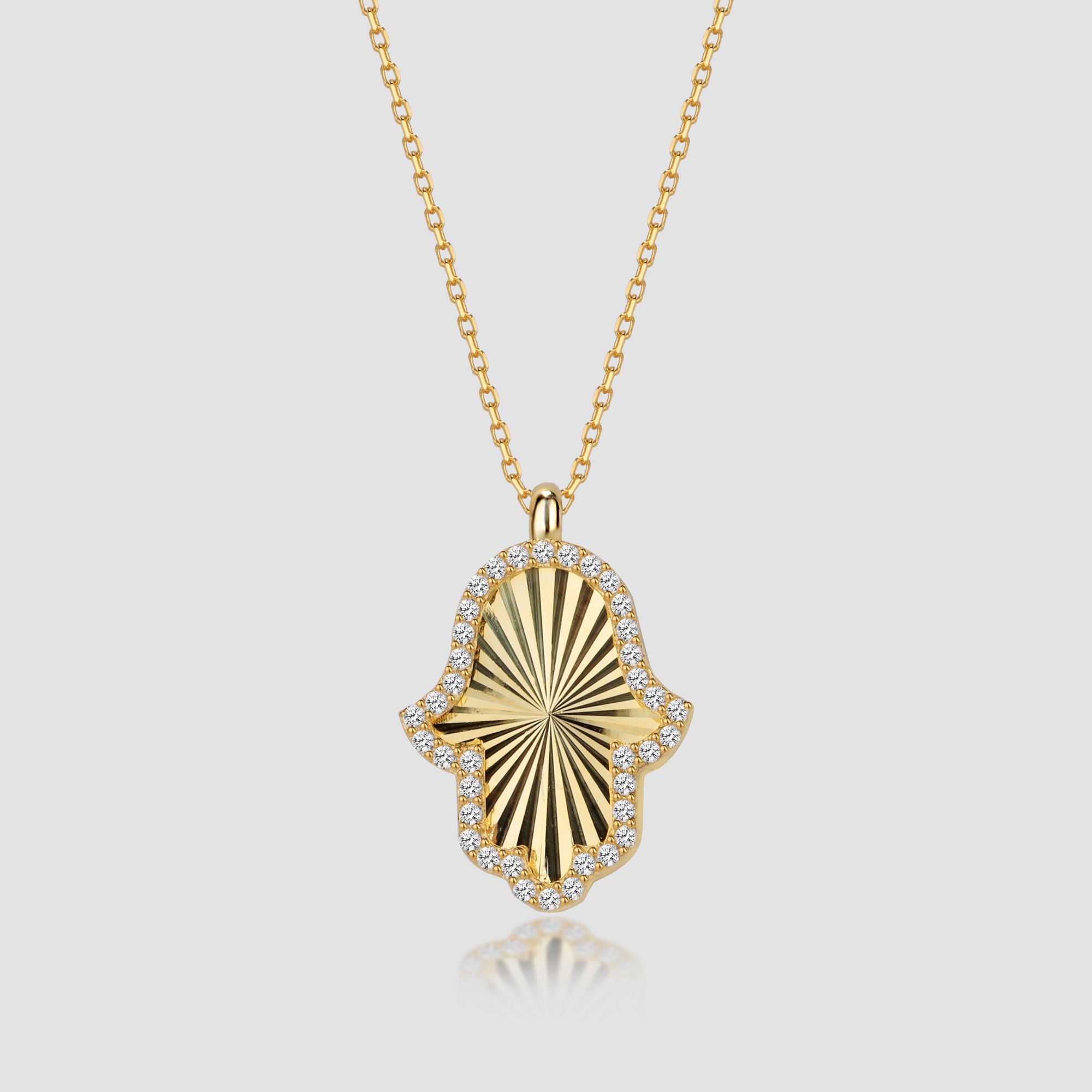 Get the Hamsa Hand from our gleaming gold collection! Protect yourself from the evil eye with this traditional yet modern piece of jewelry and bring good luck and success into your life. Perfect for any occasion and a unique gift for a loved one. Order now!