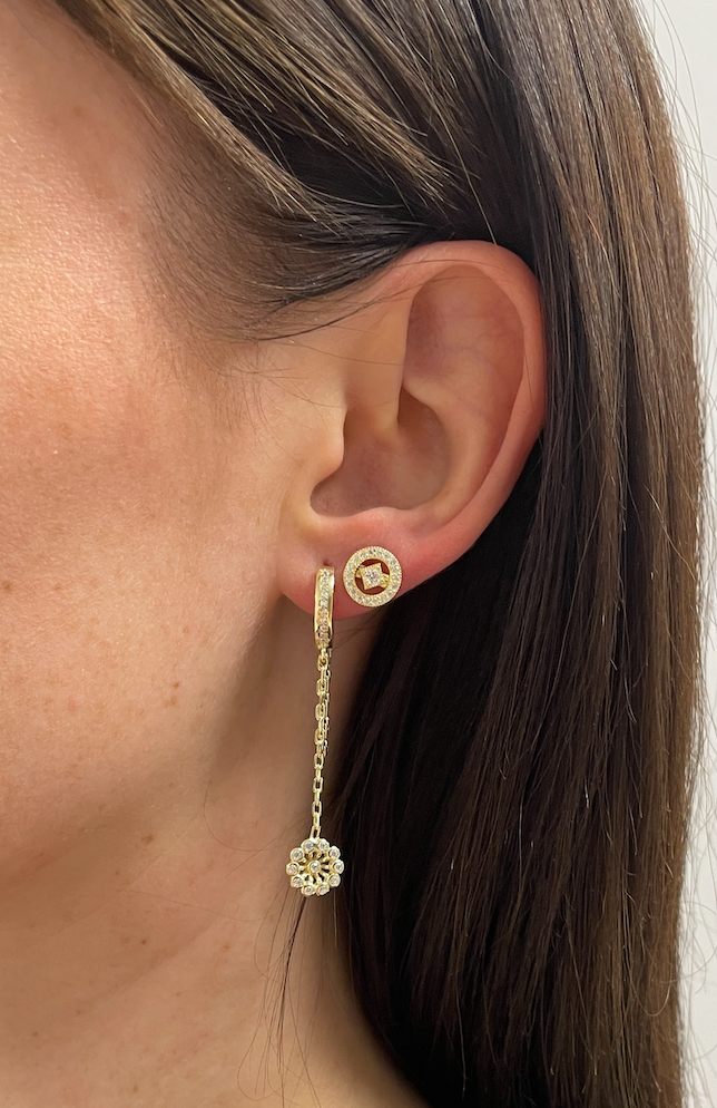 Classic and modern – These beautiful hoop earrings with multiple zirconia pendants can be combined for both a classic and a modern look. They are made of 750 gold-plated 925 sterling silver and adorned with sparkling zirconia stones.