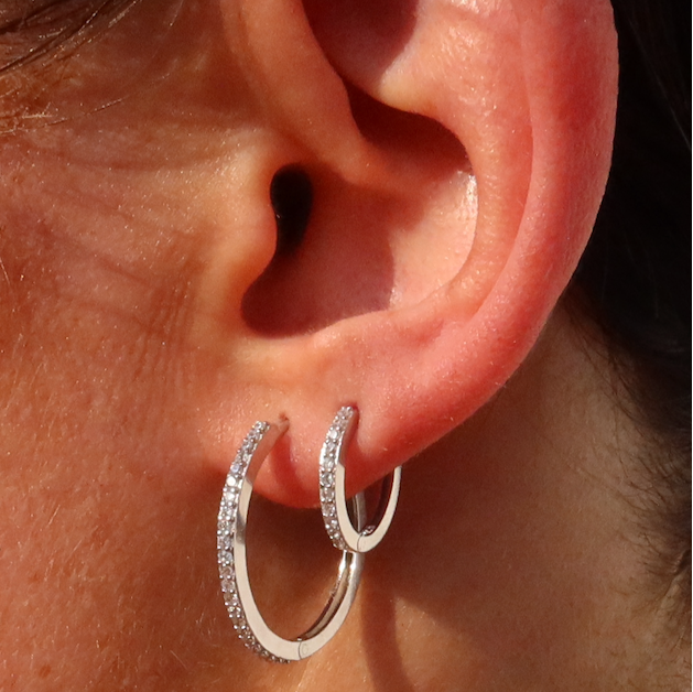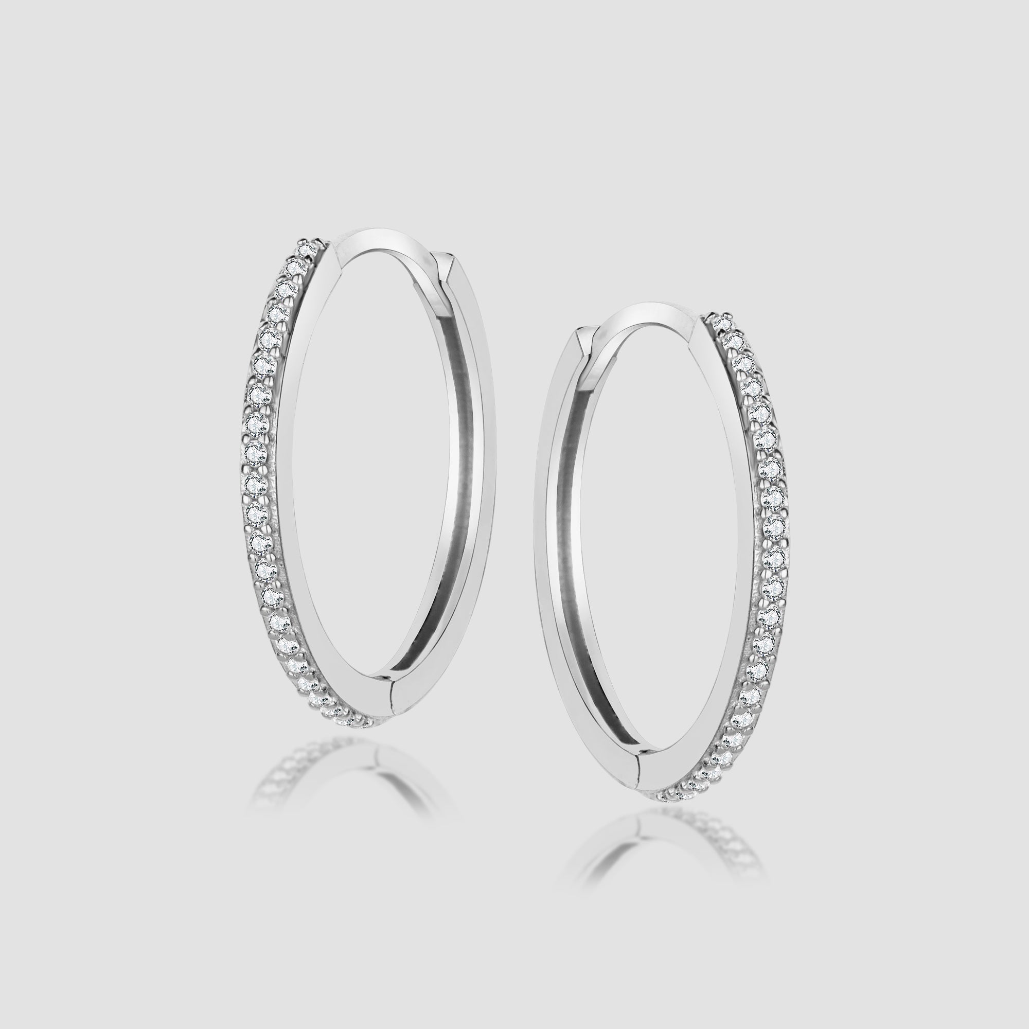Give your look a sparkling finish with the ONE Line Pave hoop earrings L In silver! This luxurious hoop earring is made of high-quality 925 sterling silver, rhodium-plated, and set with luminous zirconia stones. Enhance your glamorous look with this luxurious hoop earring and be captivated by its high-quality craftsmanship and recycled material! Embrace radiant shine and elegance!
