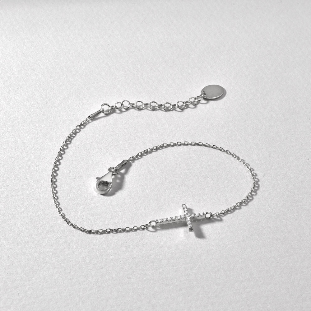 This beautiful bracelet is an absolute must-have for every jewelry lover! The delicate cross in shiny silver with sparkling zirconia stones combines timeless elegance with modern design. Perfect for everyday wear or special occasions – get this unique accessory now and add the finishing touch to any outfit!