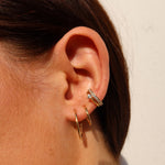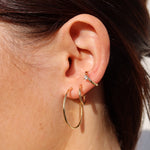 Nahaufnahme einer jungen Frau mit Sommersprossen und sonnengebräunter Haut, die große goldene Creolen trägt. Im natürlichen Sonnenlicht in Nürnberg aufgenommen – hochwertiges Editorial-Foto für Schmuck, Fashion und Social Media.