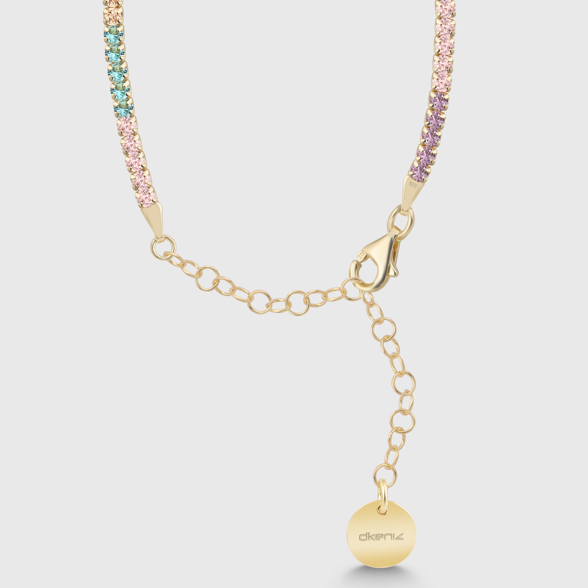 Play the game in style with the Mini Colorful Tennis Necklace in Gold! This beautiful necklace adds a touch of elegance to your look and is perfect for all tennis fans. Show off your passion for the game and add a pop of color to your outfit. Get your Mini Colorful Tennis Necklace in Gold today!