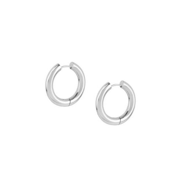Mittelgroße Hoop Creolen M aus poliertem Edelstahl in Silber für Damen.